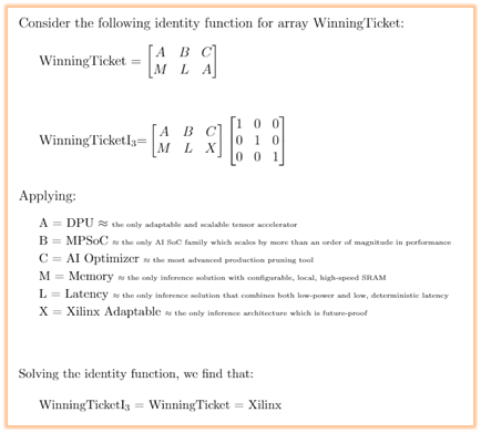 I am very bullish about the possibilities that will abound as future research derived from “The Lottery Ticket Hypothesis” leads us to a new generation of pruning techniques for even greater efficiency gains. Furthermore, it is more than just my intuition that tells me that only adaptable hardware, offering multi-dimension scalability, will provide a vehicle for you to collect the prize. Grab a ZCU104, download Vitis-AI, and start your journey into the future of AI, today.