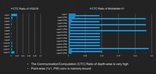 Depth-wise convolutions do not result in such channel-wise reductions. Memory performance becomes much more important.